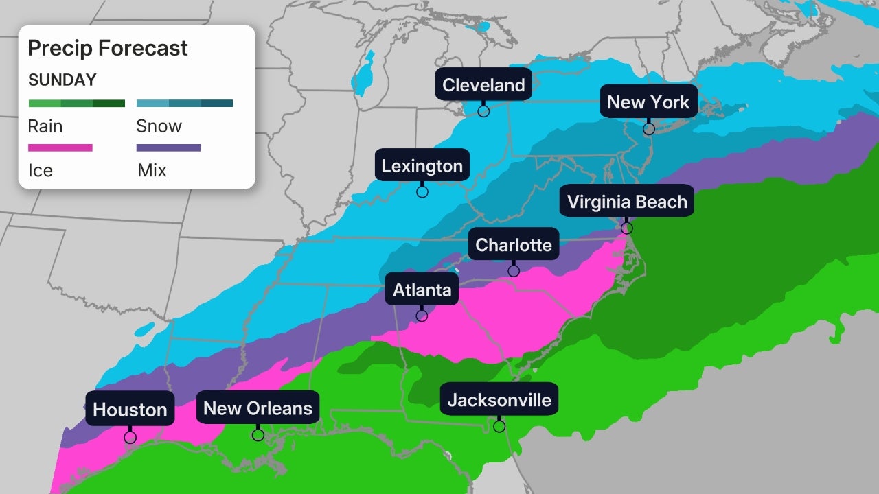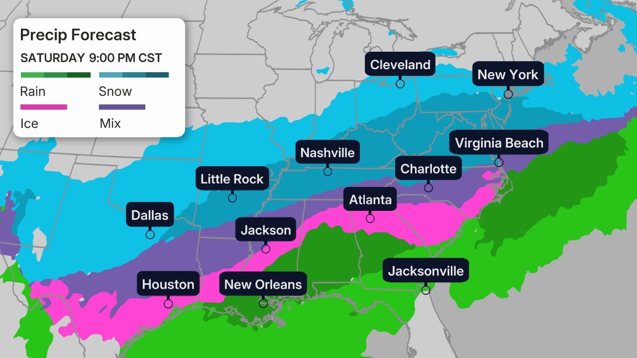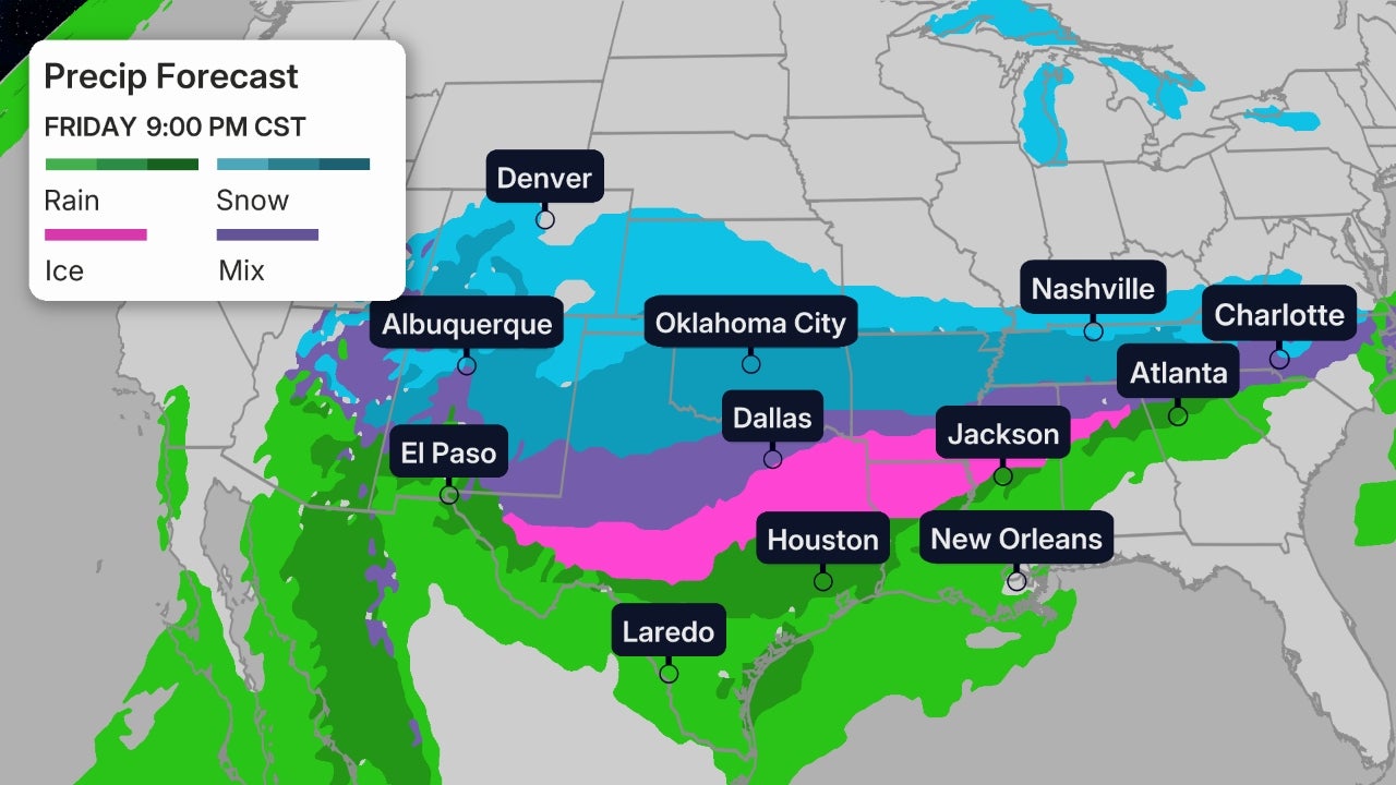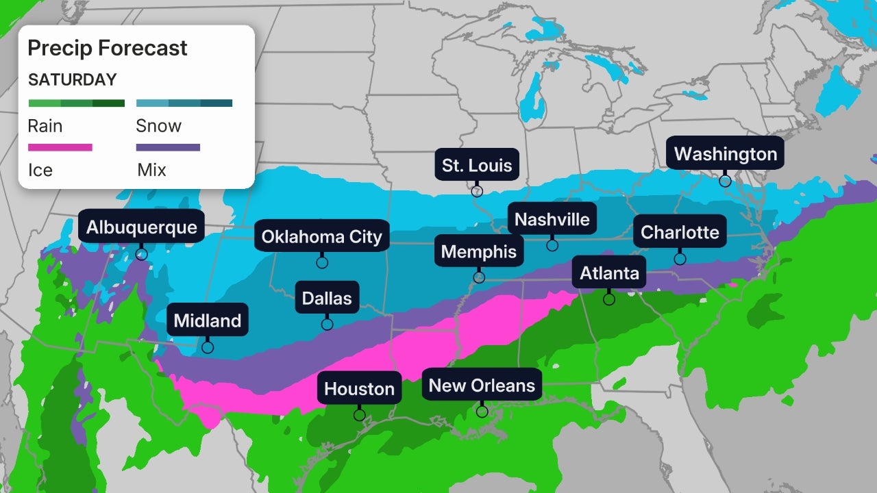 A major, widespread winter storm is likely from the South into parts of the East Friday into the weekend that could spread damaging ice and heavy snow for millions from Texas and Oklahoma to the Carolinas and mid-Atlantic states.